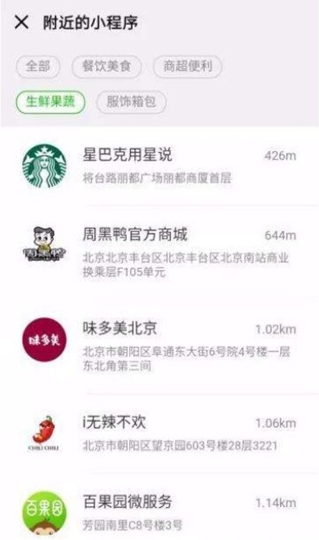在小程序中,有一個(gè)"附近的小程序"功能。當(dāng)用戶打開這項(xiàng)功能之后,他就可以看到身邊5KM內(nèi)的企業(yè)、商家、店鋪。相反,企業(yè)、商家、店鋪可利用這項(xiàng)功能,讓周邊5KM內(nèi)的微信用戶找到自己。這樣一來,自然就能大大提升店鋪曝光率,進(jìn)而挖掘出一大批流量。