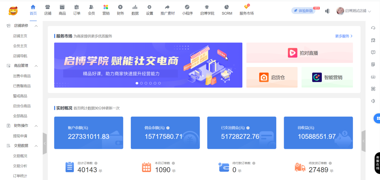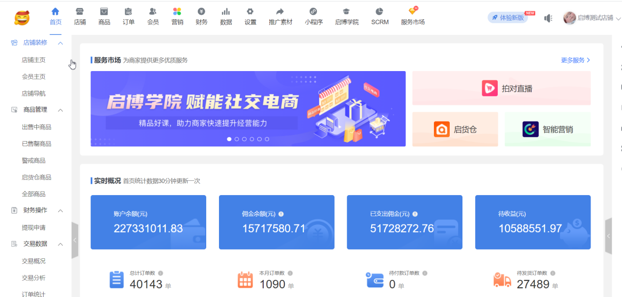 現邏輯:系統后臺頂部菜單新增“啟博學院”入口,代理商客戶后臺不展示
