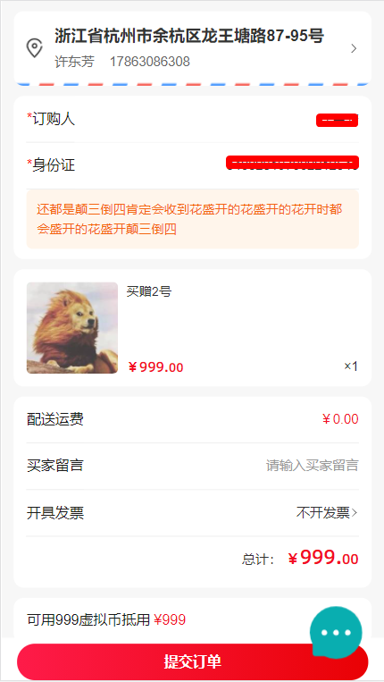 現邏輯:H5、小程序、后臺訂單詳情都可以修改姓名和身份證號碼