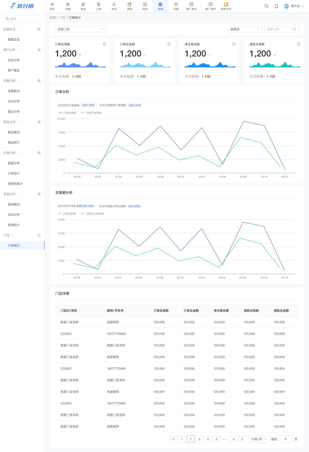 (1)新版后臺-數據-交易分析-訂單統計新增門店統計: