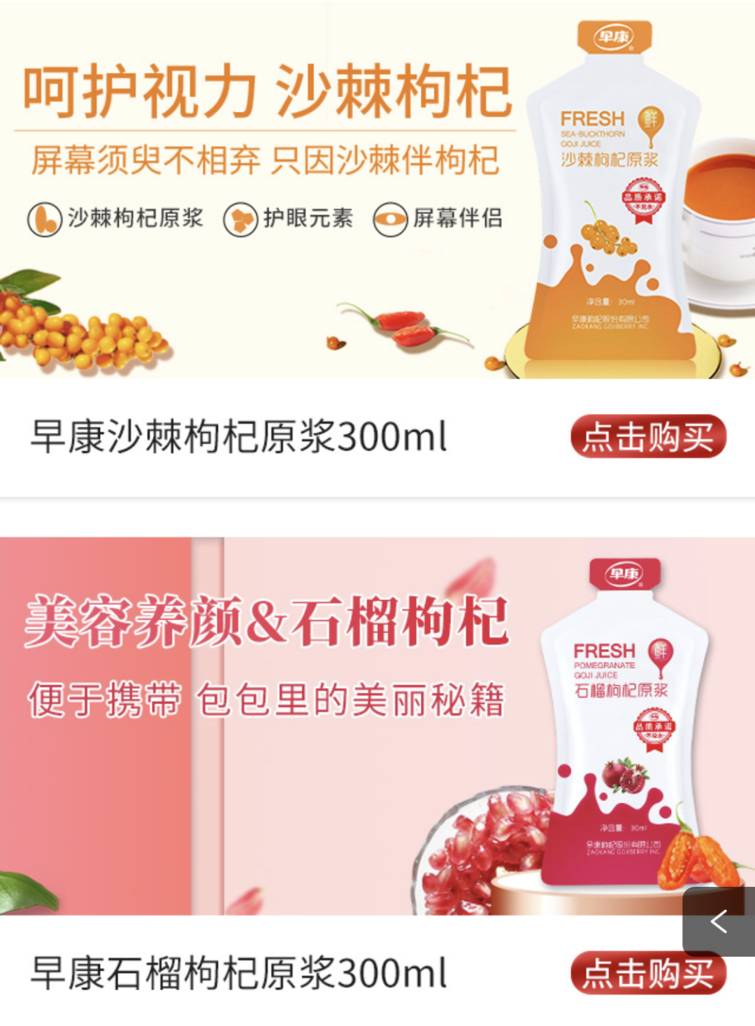 早康枸杞從功效、用途、客戶需求等多方面出發,研究出了以枸杞為原材料的多個品類,比如蜂蜜、紅糖、酵素,通過不斷提升評判標準,配合小規模生產、推廣,以此保證產品的受歡迎程度,最終提高用戶的復購率,激發潛在用戶的購買欲。