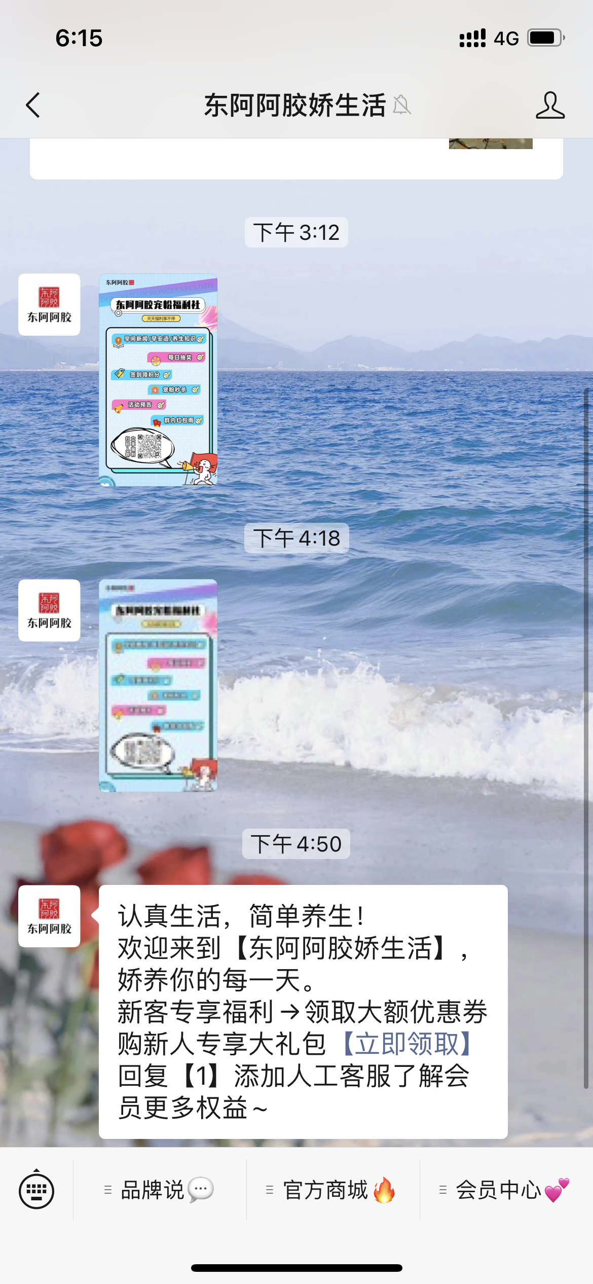 從公眾號的內容、互動形式、引流方式來看,東阿阿膠的主公眾號既是以樹立品牌形象為主,也沒有放棄引流,在菜單欄有設置私域入口。