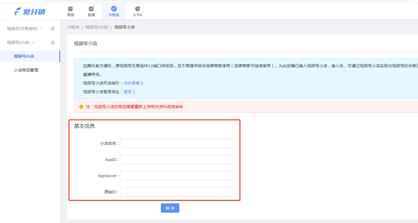 啟博對接視頻號小店能力已發布上線,適用于微分銷啟小鋪小程序系統所有版本!