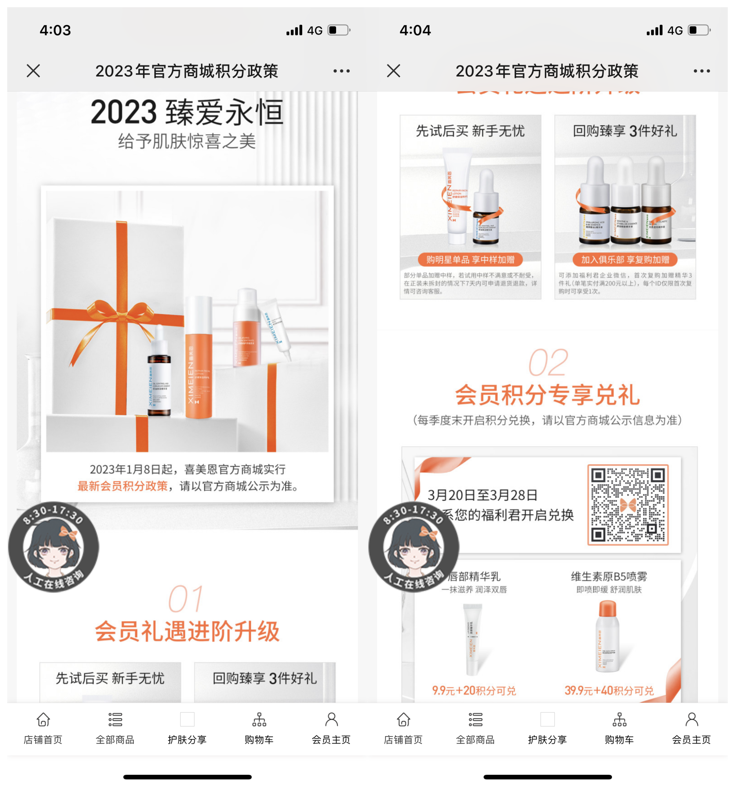 微商城內的活動上新、產品上新,公眾號、視頻號會及時同步,結合圖文和視頻,更為全面的讓消費者了解產品特性與了解自身皮膚狀態,及時給予客戶準確的解決方案。