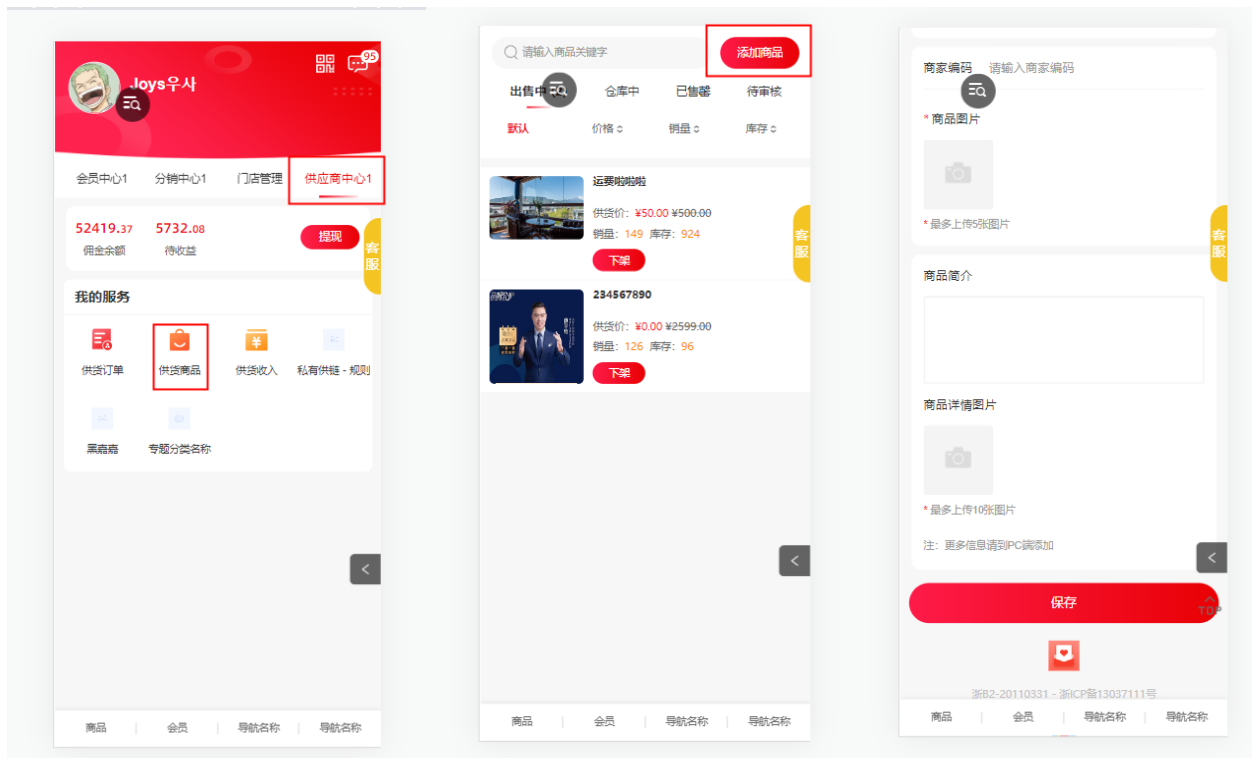 手機端——供應商中心操作添加新商品增加可以商品詳情圖片,最多只能上傳10張。