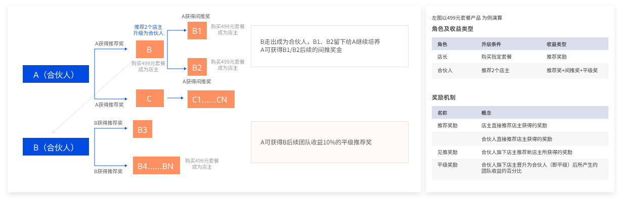 “走人”機制推薦兩個人消費成為“代理即升級為店長,關系脫離