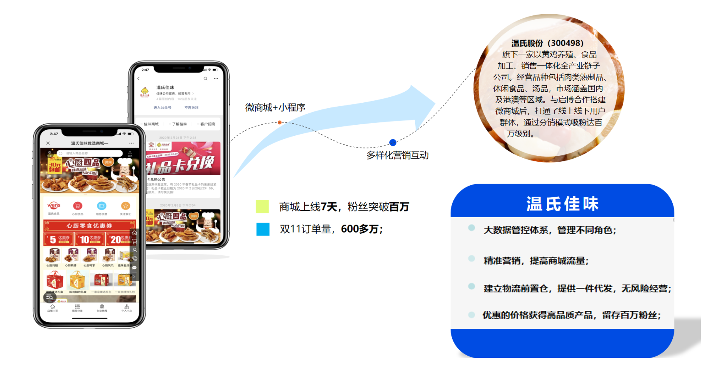 借助社交電商平臺(tái)將線上線下各渠道的會(huì)員、消費(fèi)、服務(wù)等進(jìn)行融合,形成“線下體驗(yàn)店+移動(dòng)APP+微信端+智能物流”的新零售業(yè)態(tài)。