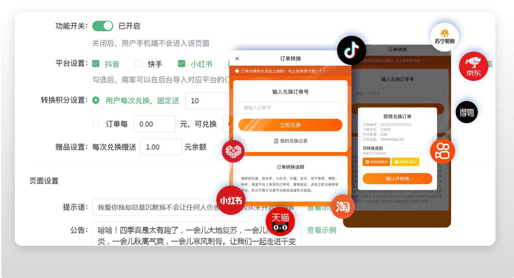 通過(guò)公域訂單兌換私域積分好禮的方式,將粉絲高效引導(dǎo)至私域,沉淀到私域的粉絲。消費(fèi)者復(fù)制抖音訂單號(hào),進(jìn)入小程序輸入抖音訂單號(hào),兌換積分/優(yōu)惠券/儲(chǔ)值現(xiàn)金等。