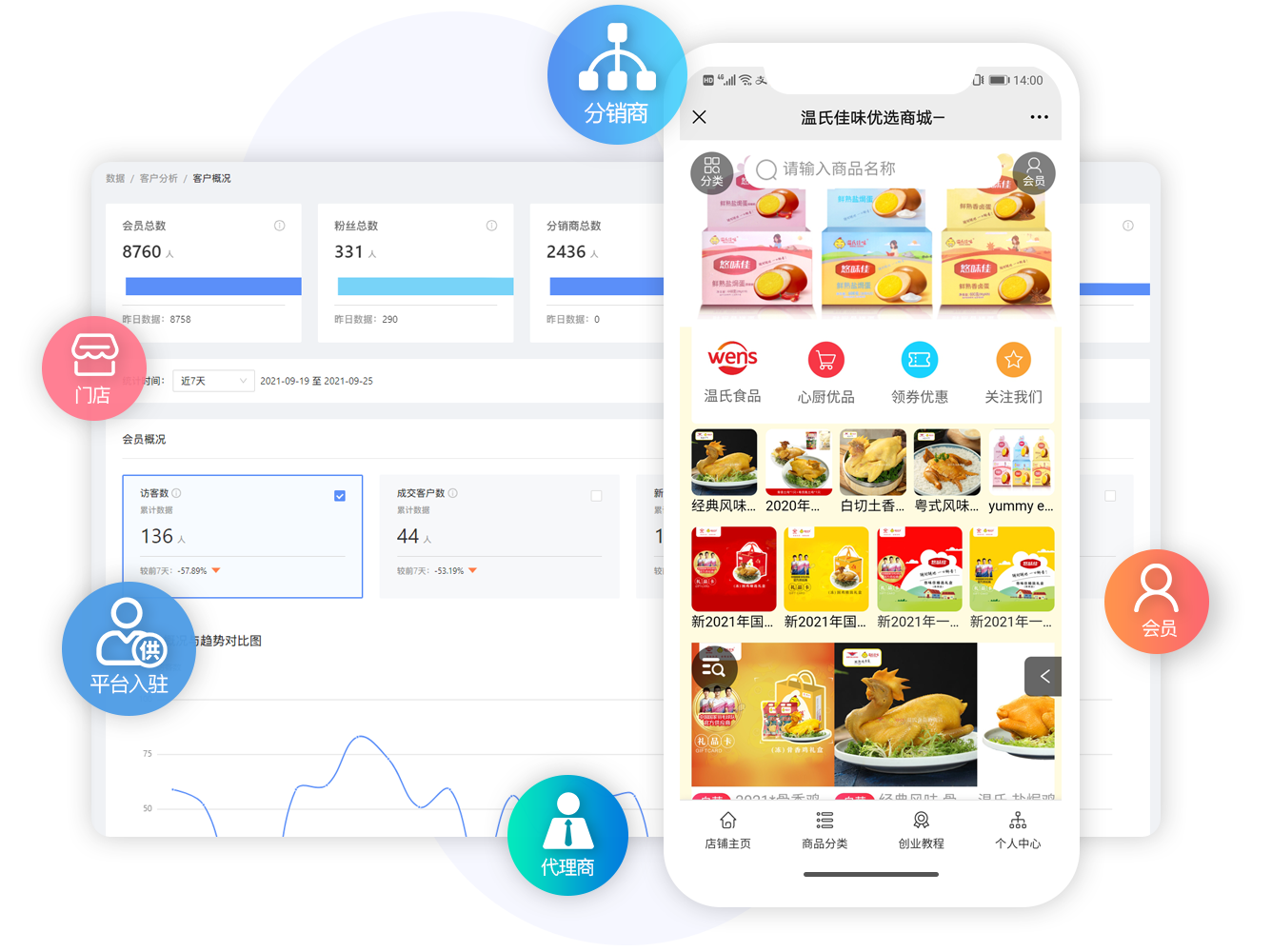 支持微商、門店、廠家等多種分銷模式,深